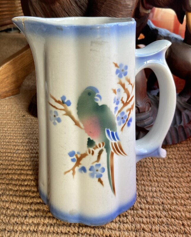 Arabia papukaija maitokannu, piippuleima, vika nokassa Mitat: myöh.