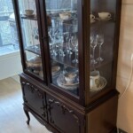 Seinävitriinikaappi 1800/1900-luku, liukulasiovi, lyijylasityö, erikoinen malli, seinäkiinnikkeet Mitat: myöh.