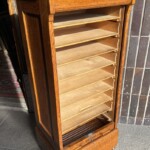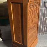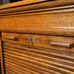 Rulokaappi, tammea, 1920-luku, sisällä hylly, lukko toimii ja avain tallessa. Billnäs malli, hienokuntoinen Mitat: myöh.