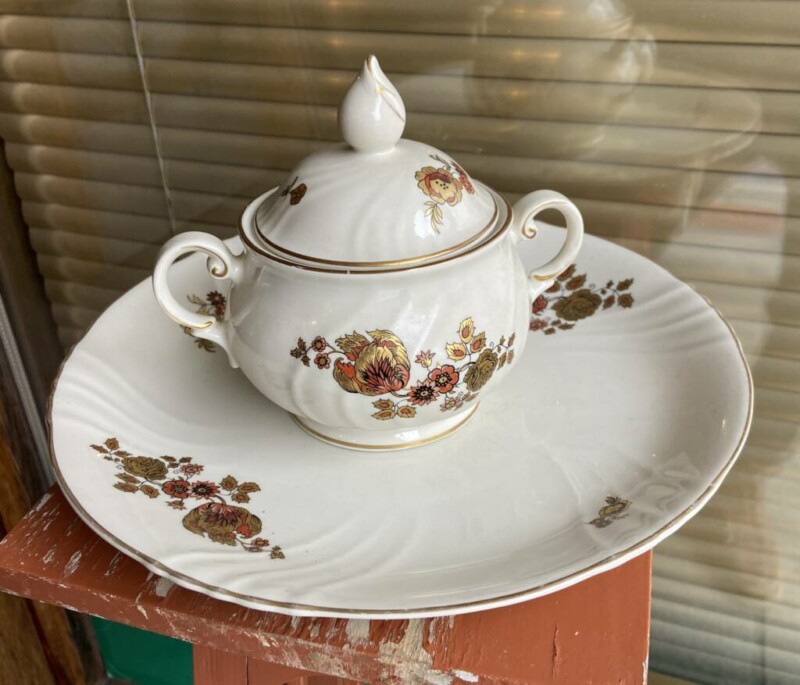 Arabia sokerikko (MYYTY) ja pullavati Mitat: Sokerikko K.8 Lautanen Halk.27