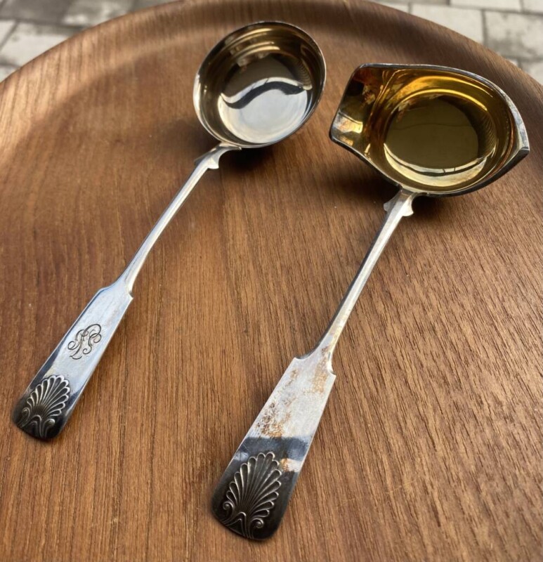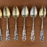 Pienet hopealusikat kotimaista 813-leimattua hopeaa, kaikissa kaiverrus. Mitat: P.10,5-13,5cm Myyntihinta: 18,00 €/kpl Kaksi isompaa otinta kotimaista 830-leimattua hopeaa (kauhassa kaiverrus).... Lue lisää