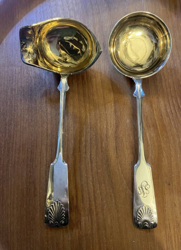 Hopeiset leimatut antiikkilusikat 1700/1800-luku Mitat: P.13,5, 21 ja 27,5 4 kpl isoja MYYTY. Isoin puurolusikka MYYTY! Pikkulusikat jäljellä!