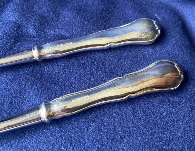 Kakkulapiot 2 kpl, kotimaista leimattua 830-hopeaa, ei kaiverruksia, Suomi Pöytähopeat Mitat: P.22,5 - 26