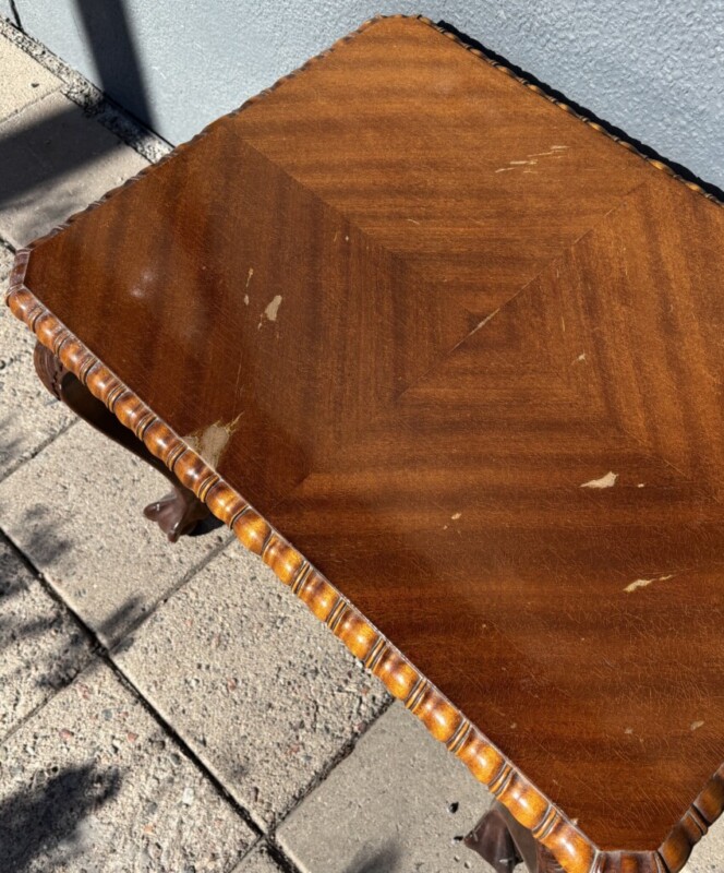 Sohvapöytä Chippendale 1950-luku, mahonki/koivu Mitat: K.60 Halk.80