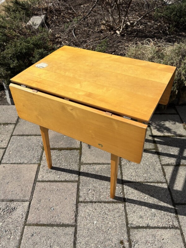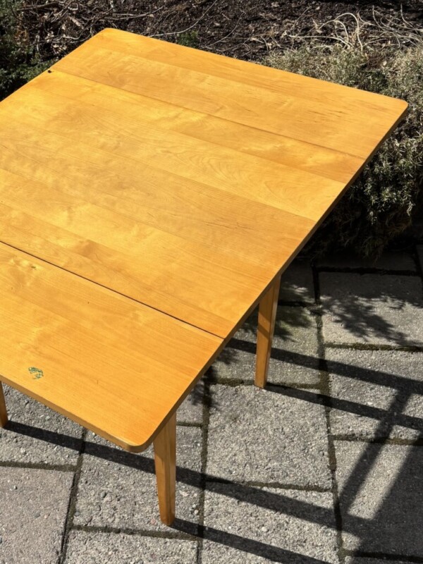 Jatkettava ruokapöytä, 1950-luku, koivua. Mitat: K.74 P.54 (jatkettuna 102) L.78