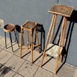 Alvar Aalto, Artek E60 jakkarat, musta linoleum, koivua. Mitat: K.44 1 kappale jäljellä.