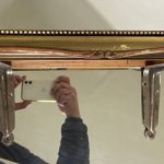 Kullattu siro pieni hylly, lasinen päällinen, hyllykannakkeet alla. n.1960-luku Mitat: L.53 S.23