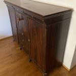 Mahonkinen 1900-luvun alkupuolen lipasto/laatikosto, pienet pyörät jaloissa Mitat: L.122 S.53 K.130