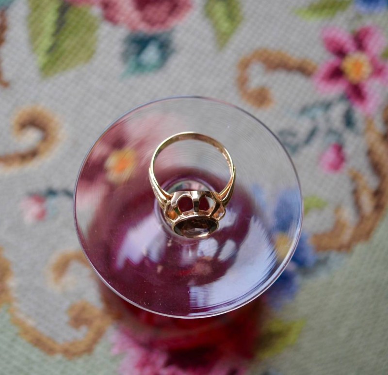 Kotimaista 14K kultaa, savukvartsi, Wasama & Co. Oy Helsinki v-1962, ei kaiverruksia Mitat: Halk.18,5 Kivi halk.1,8