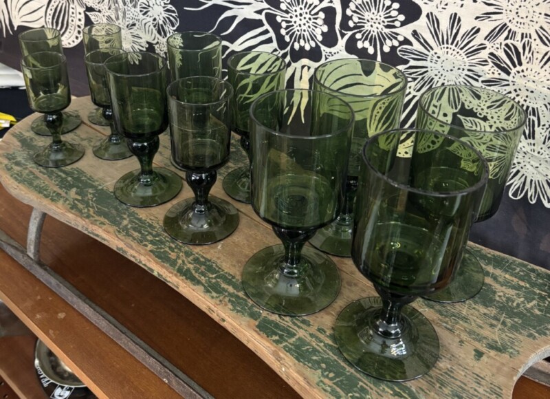 Viilikulhot vihreää lasia 4 kpl jäljellä, 1800/1900-luku. Mitat: K.5 Halk.16 Isot kulhot vihreää lasia 3 kpl 1800/1900-luku. Mitat: K.7,5 Halk.20,5... Lue lisää