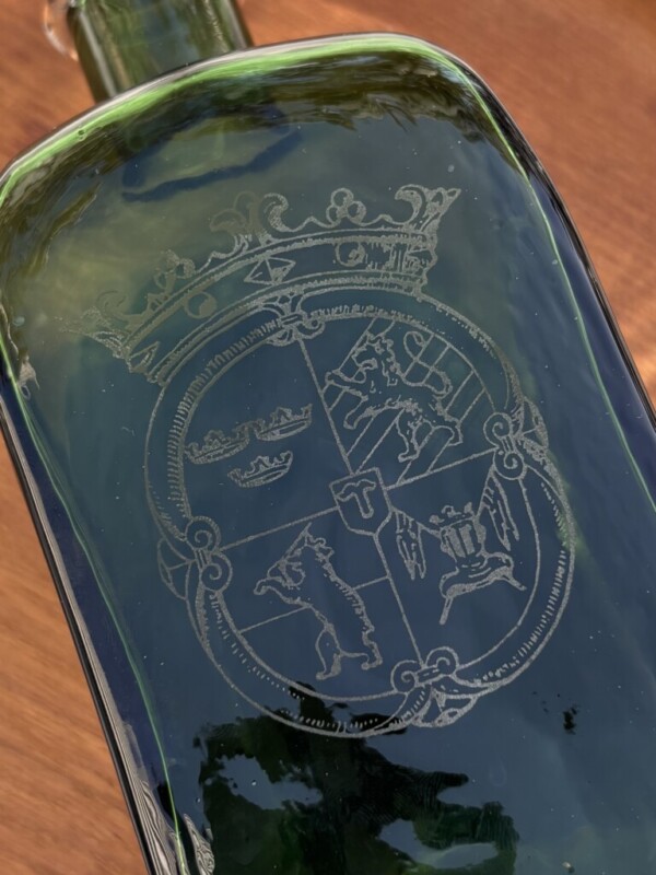 Vanhat juomalasit ja karahvi, puhallettua lasia Mitat: K.10,5 & 19,5.
