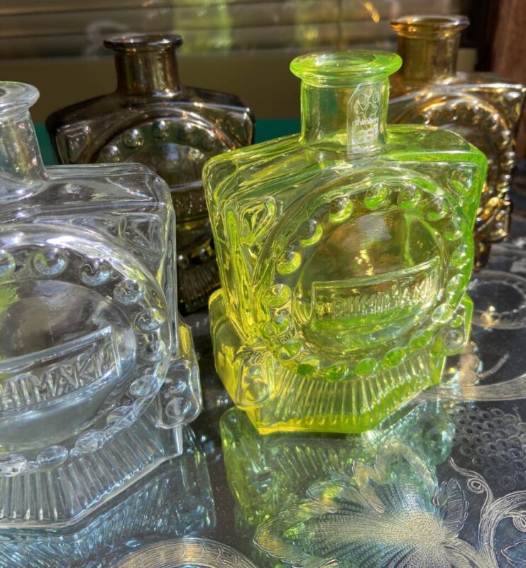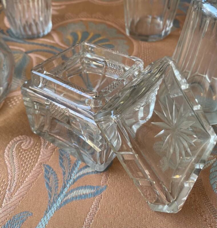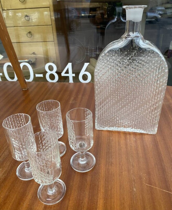 Viski ja viinikarahvi käsin hiottua kristallia, kotimaiset vanhat karahvit Mitat: K.21-34