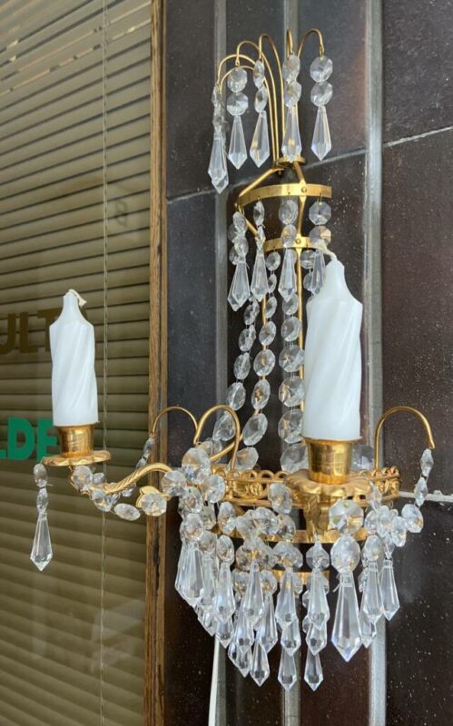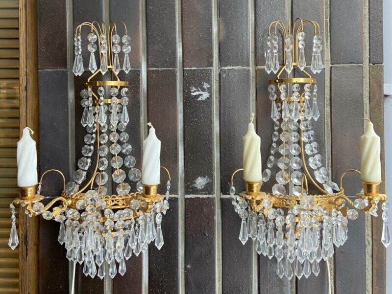 Kristalliset seinälampetit 2 kpl, kullatut messinkirunko Mitat: L.20 K.20