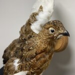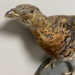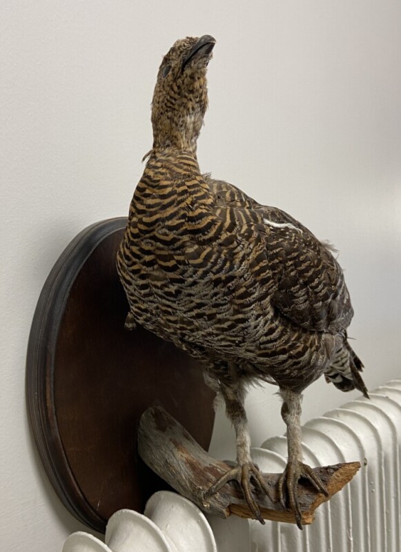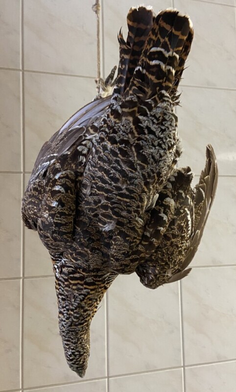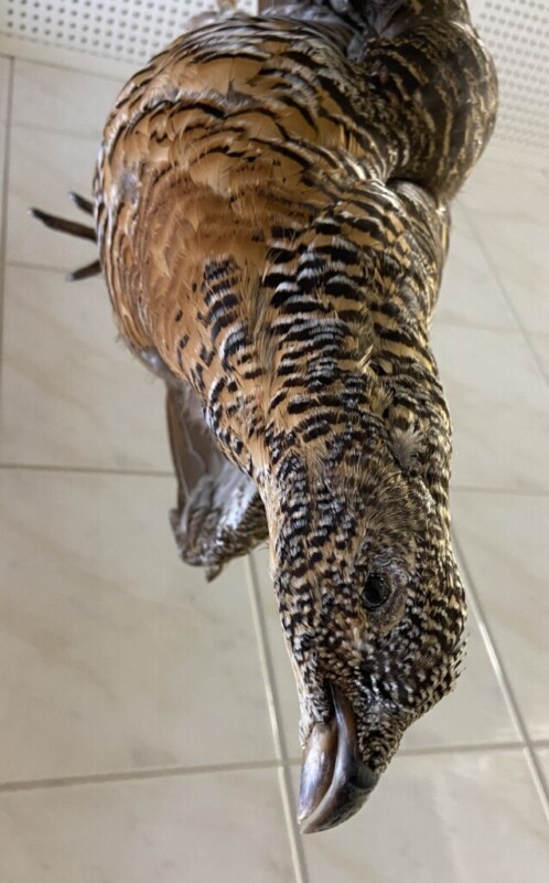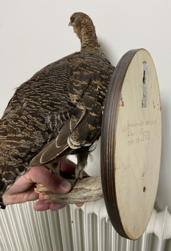Kaija Aarikka "Metso" puuveistos, nokassa pieni kolhu, muuten ehjä. Mitat: K.21 L.23