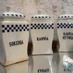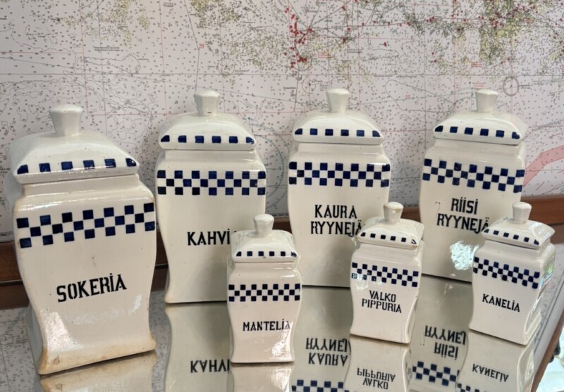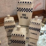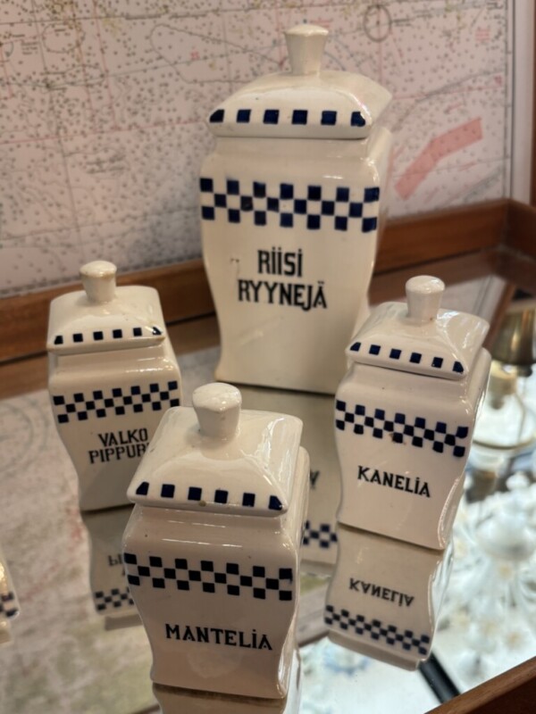 Maustepurkit posliinia, 4 kappaletta isoja ja 3 kpl pienempiä. Mitat: K.12 - 21cm