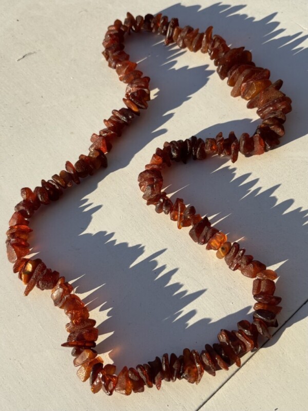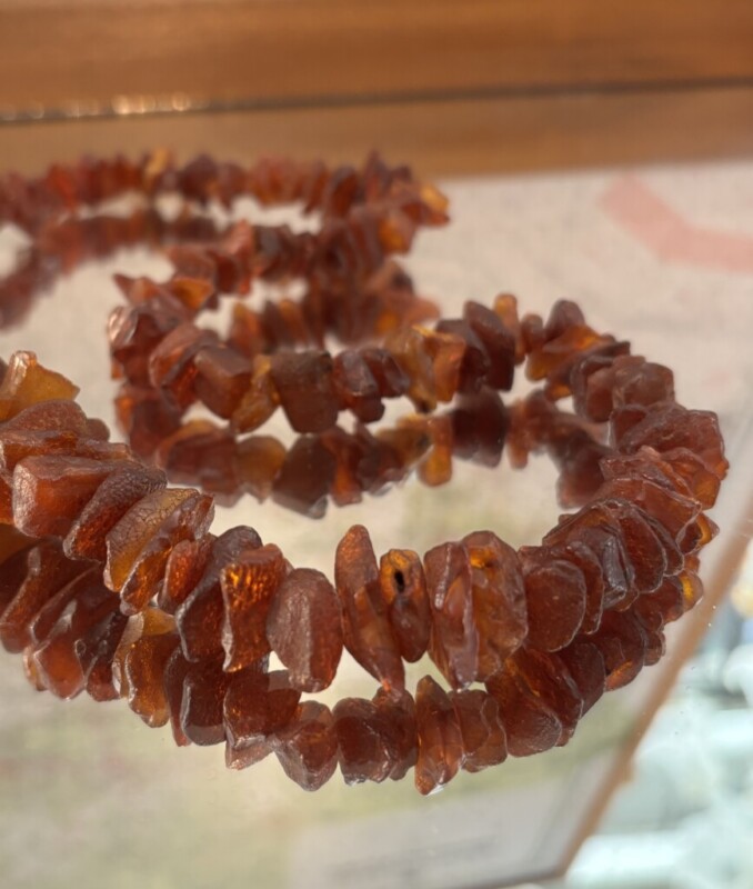 Meripihkainen kaulakoru, suurikokoisia meripihkoja Mitat: P.37