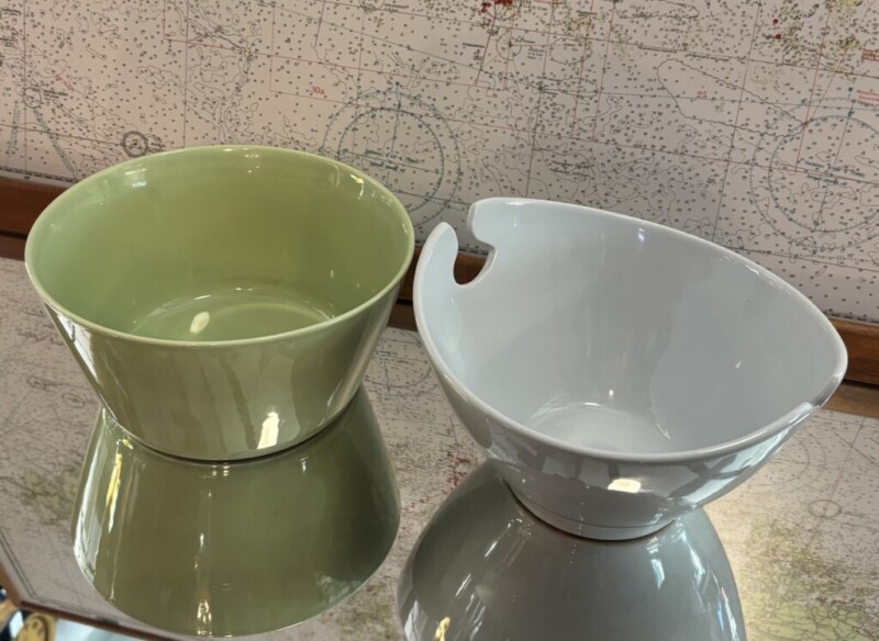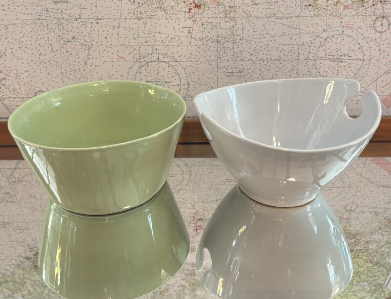 Arabia taikinakulho 1 kappale ja tuntematon valkoinen kulho Mitat: keltainen (Arabia) K.12 Halk.24 valkoinen K.14 Halk.24
