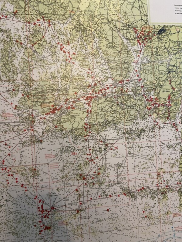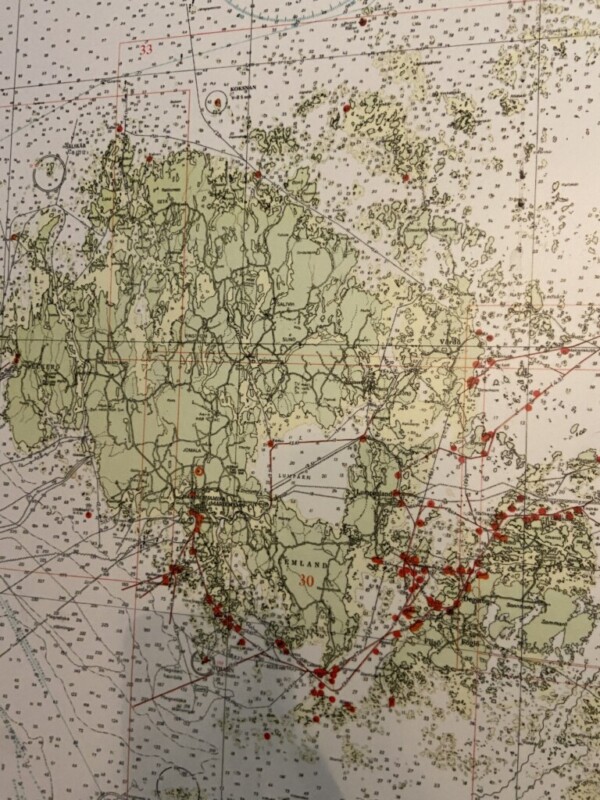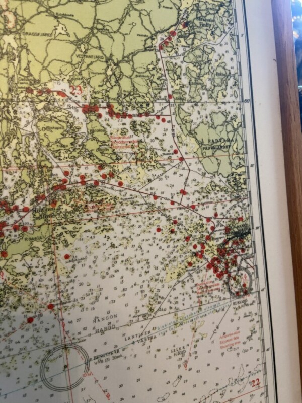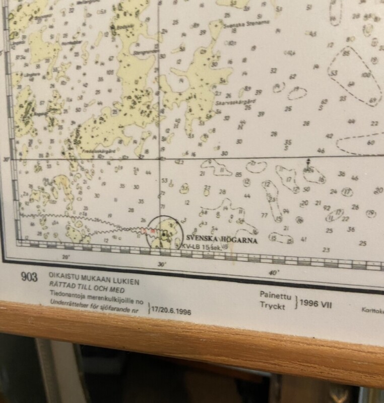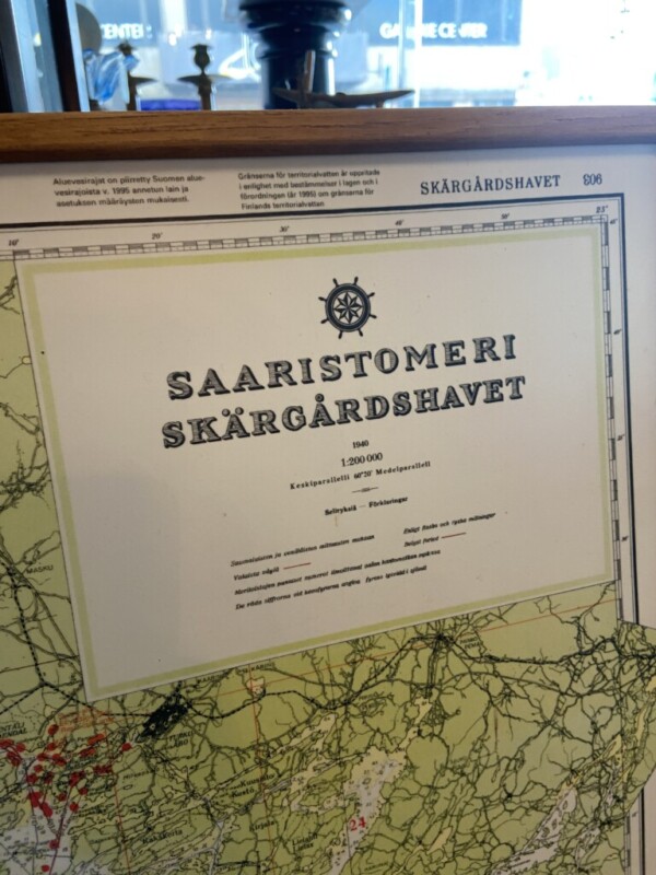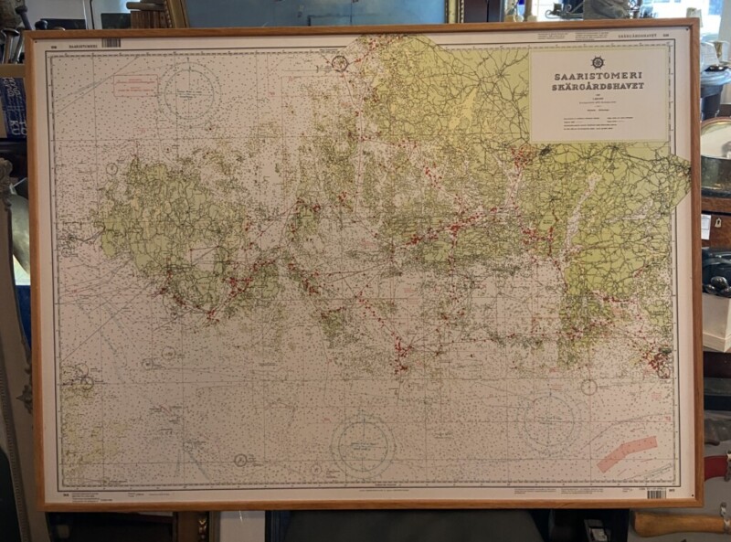 Merikartta Saaristomeri, painettu levylle, mahonkikehys Mitat: myöh.