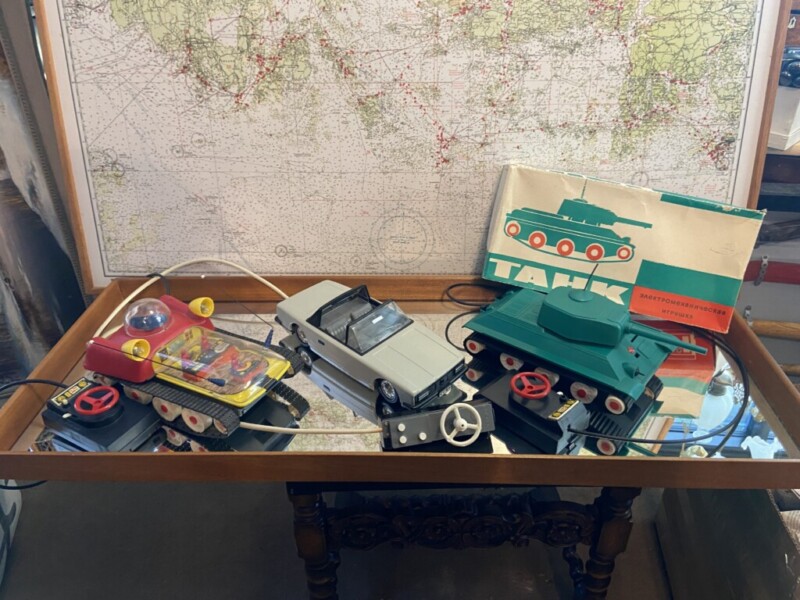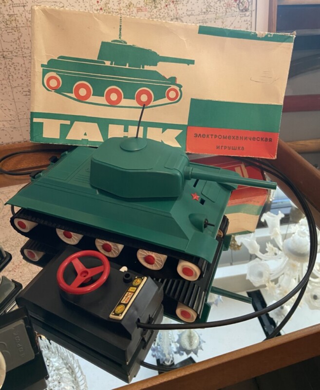 Kauko-ohjattava tankki muovia, alkuperäisessä laatikossa, Neuvostoliitto 1980-luku Mitat: myöh. Myyntihinta: 75,00 € Kauko-ohjattava avoauto peltiä Mitat: myöh. Myyntihinta: 75,00 €... Lue lisää