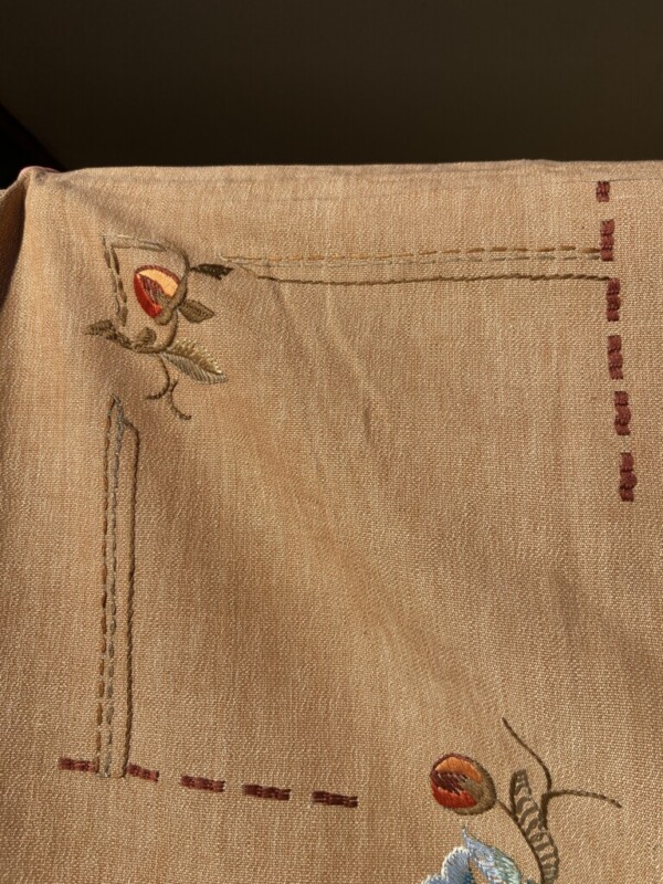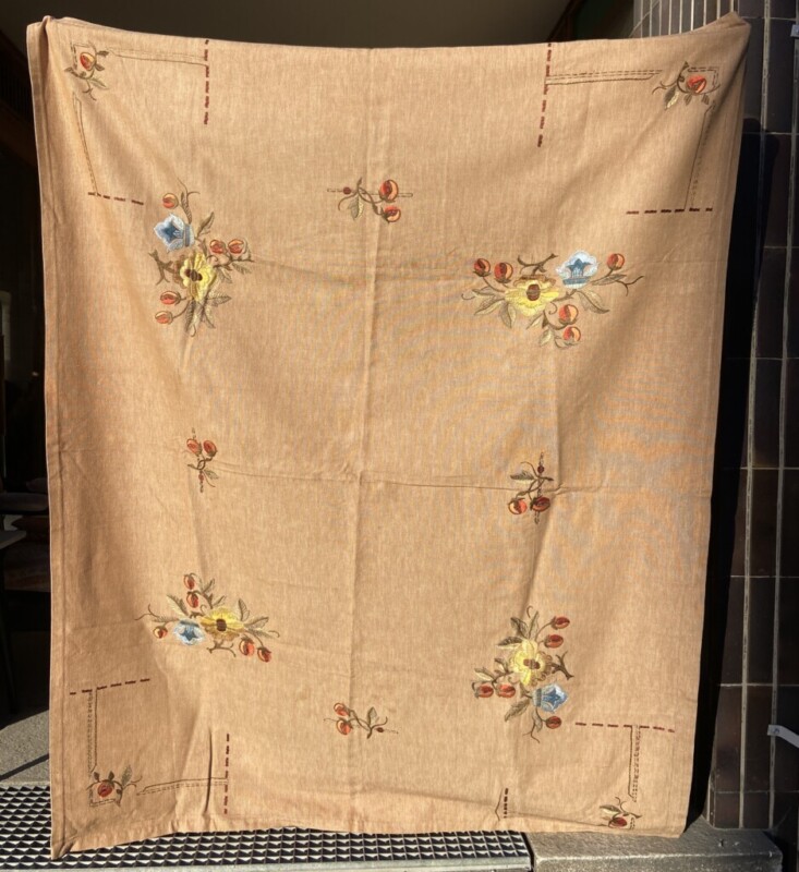 Pöytäliina käsin kirjailtu 1900-luvun alku, jugend-tyyli Mitat: 170 x 140