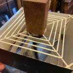 Messinkiset kynttilänjalat 1 kpl, vuosiluvut pohjassa 1853 ja 1854, tekijänleima LH Mitat: K.14,5 Oikeanpuoleinen MYYTY!