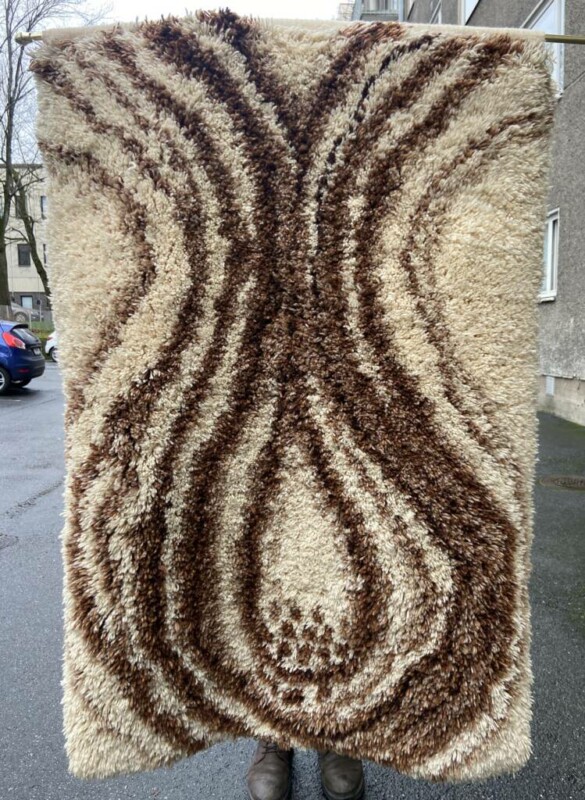 Kotimainen 1960-luvun ryijy, siisti ja ehjä, harvinaisempi malli Mitat: 110 x 160