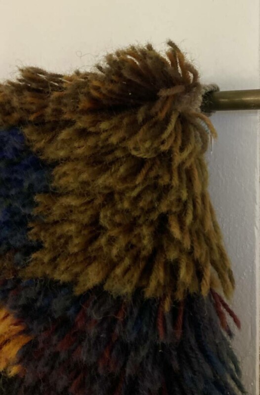 Seinäryijy 1960/70-luku, hyvän näköinen ja kokoinen seinävaate. Mitat: 155 x 107