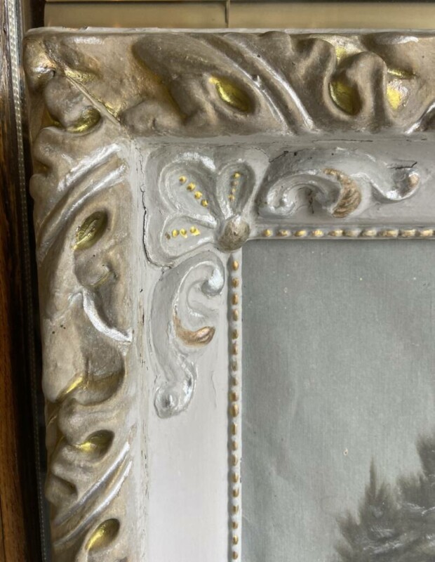 Öljyvärimaalaus, 1600-luvun huone, sign. Lauri Vahtera Mitat: 45x41