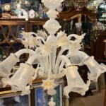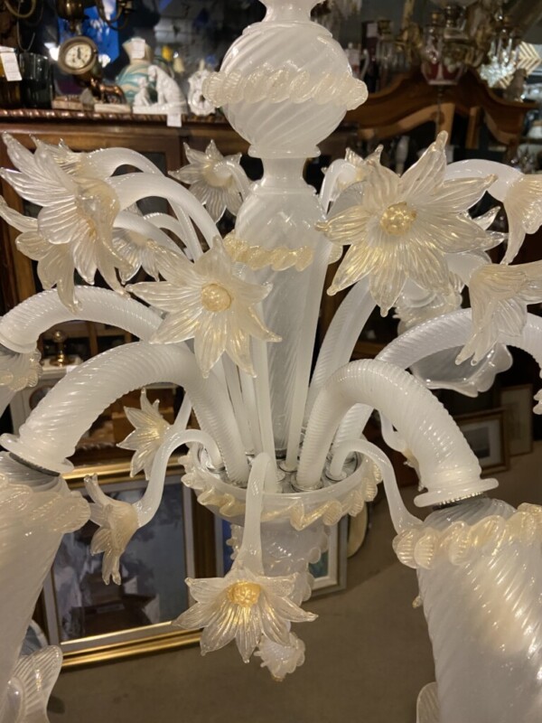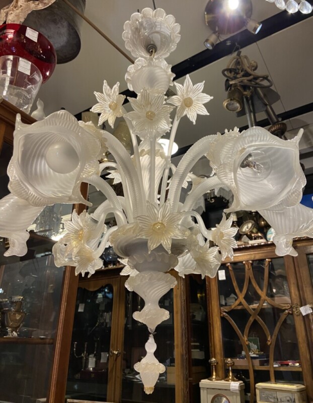 Murano Italia 1960-luku, 6-haarainen kattovalaisin lasia, puhdistettu ja pesty Mitat: K.85 Halk.70