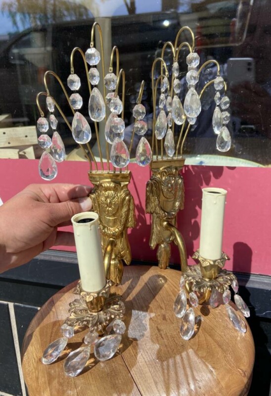 Kristallilampetit sähköistetyt, kullattua messinkiä, 1900-luku Mitat: K.16 L.15